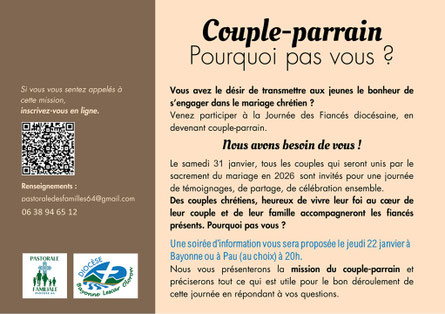 Samedi 31 janvier 2026 - journée des fiancées - préparation au sacrement de mariage - et pourquoi pas être couple-parrain